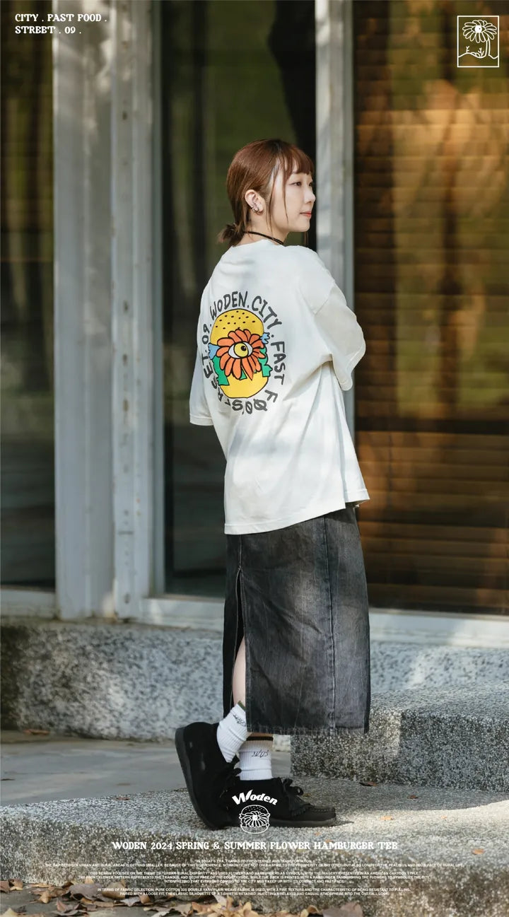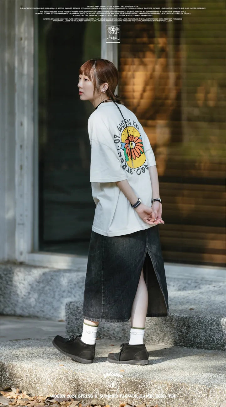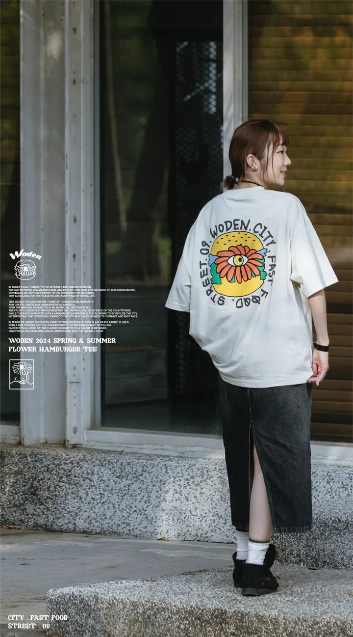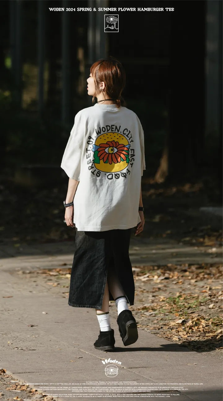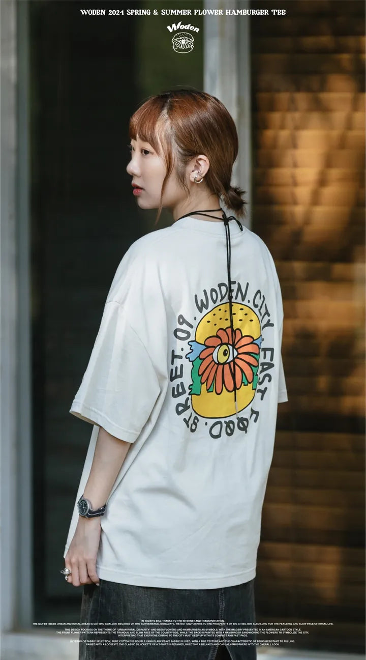 WODEN 2024 Spring & Summer Flower Hamburger Tee