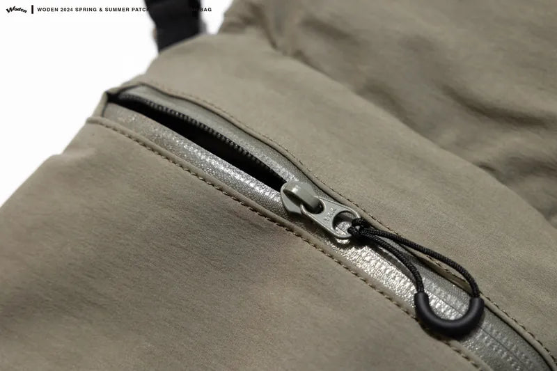 外觀設計,於正面掀蓋加入同面料曲線割線設計,使包款設計更增添層次感。背面則加入WODEN『滴狀塑膠標』增添了獨特的細節,也提升品牌辨識度。