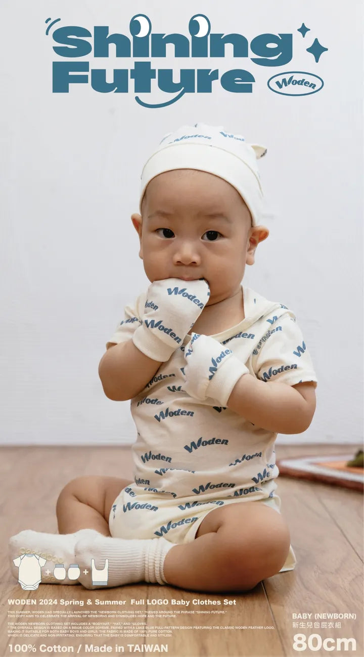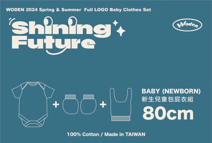 今年夏天WODEN特別推出“新生兒服裝套組”,並以『Shining Future燦爛的未來』這段話作為主題。這段文案旨在祝福新生兒的到來,更象徵著希望與未來。