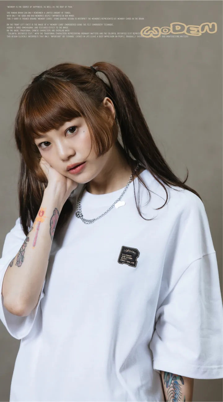 人腦能記住的事情是有限的,唯有美好的回憶和不好的回憶會深深地印刻在我們的腦海裡。此款T-shirt以“記憶卡”為主題,透過圖像排版來詮釋記憶卡所代表的腦中記憶。