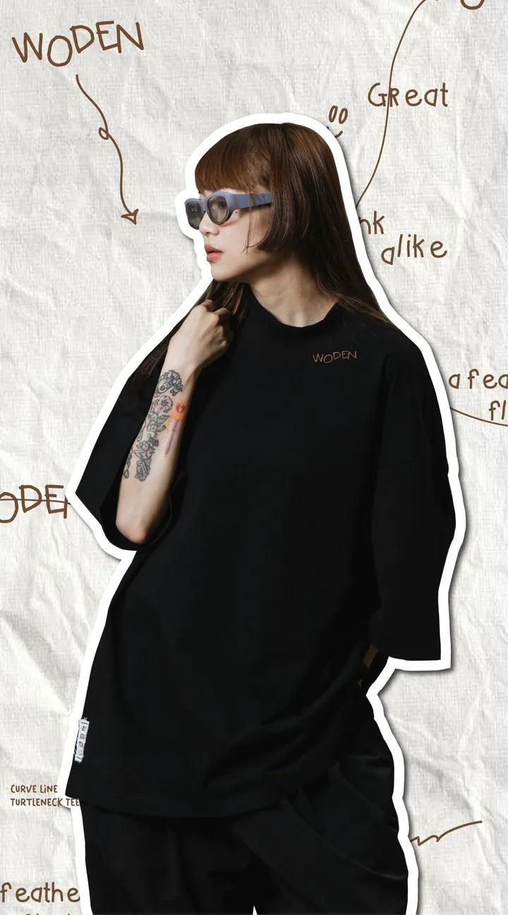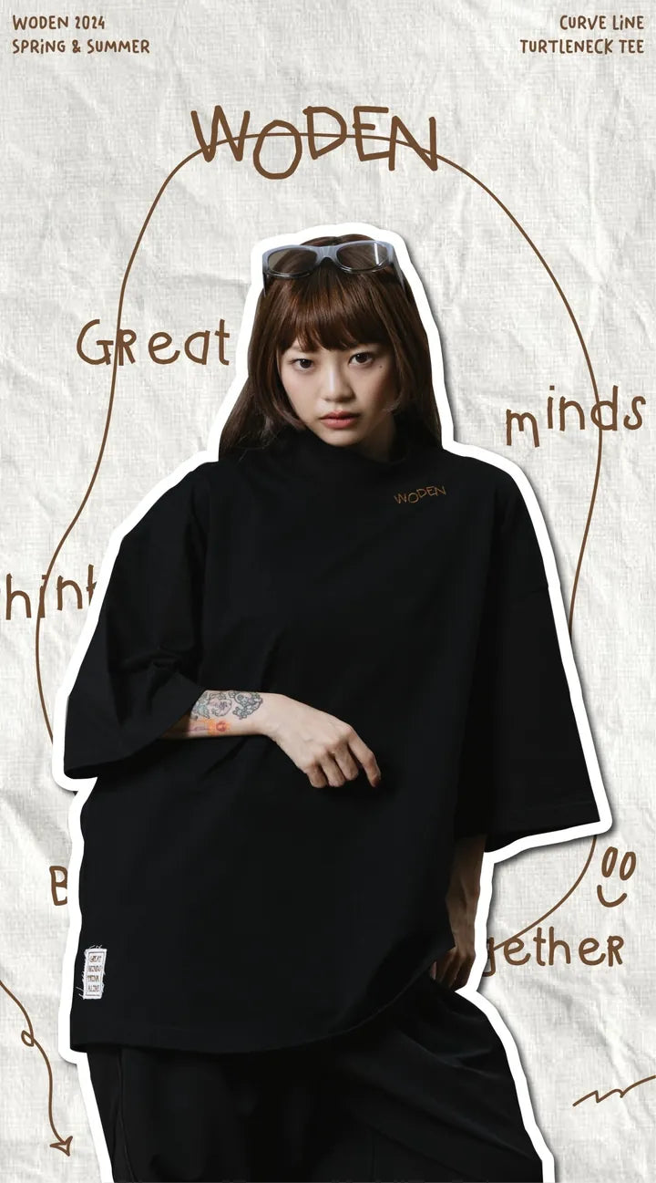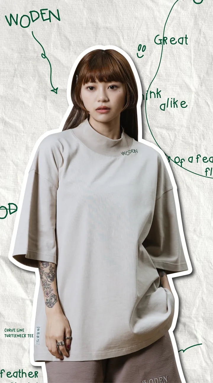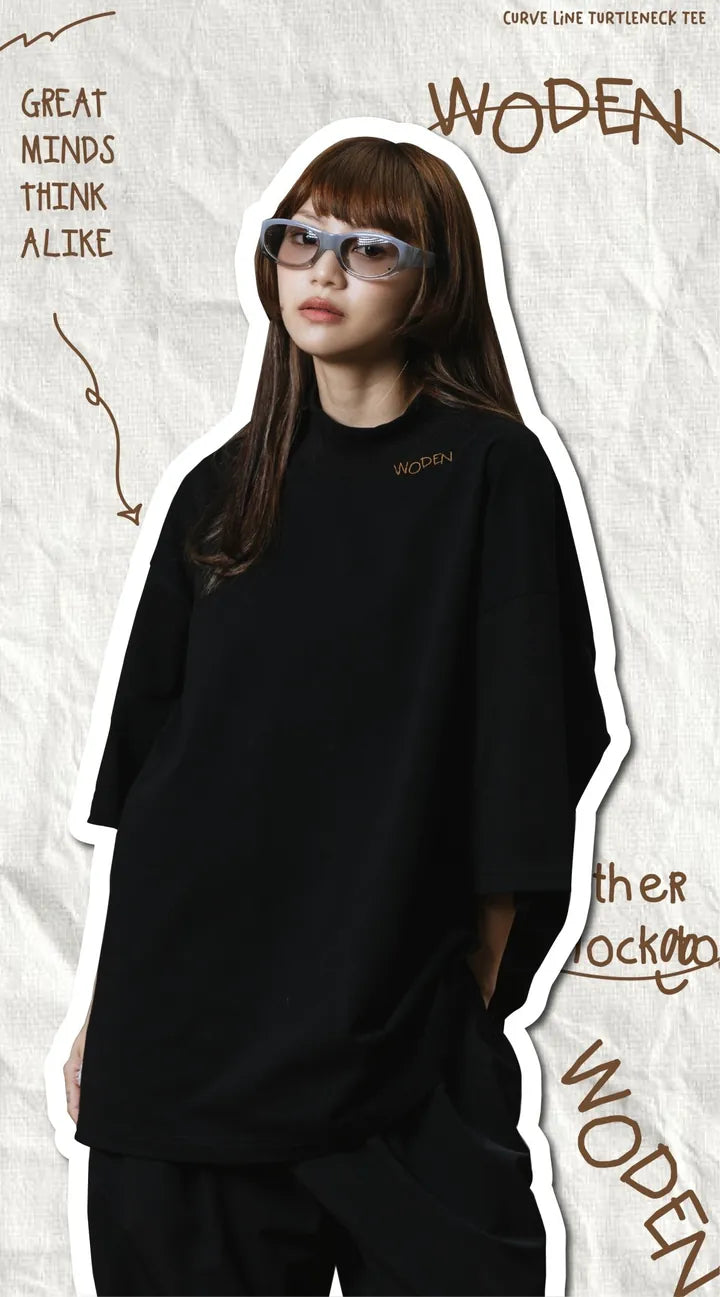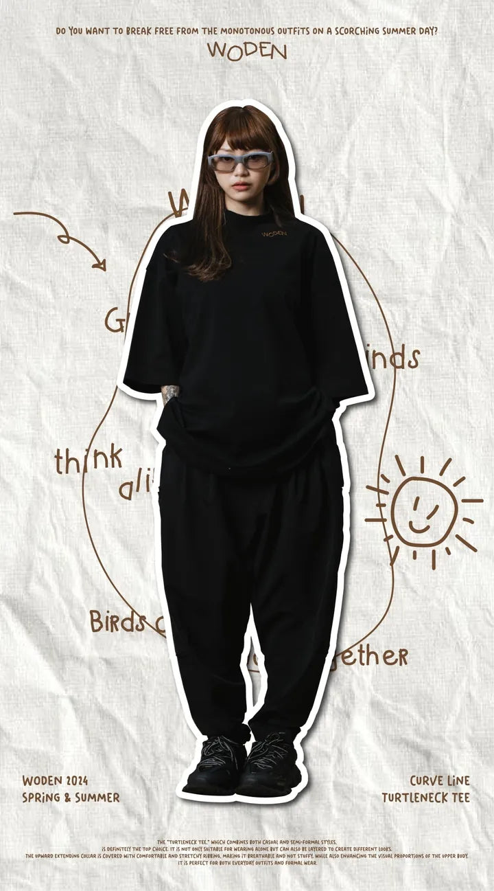WODEN 2024 Spring & Summer Curve Line Turtleneck Tee