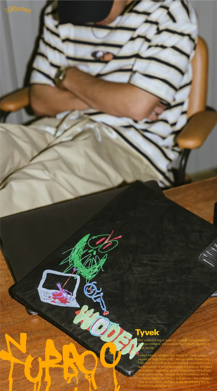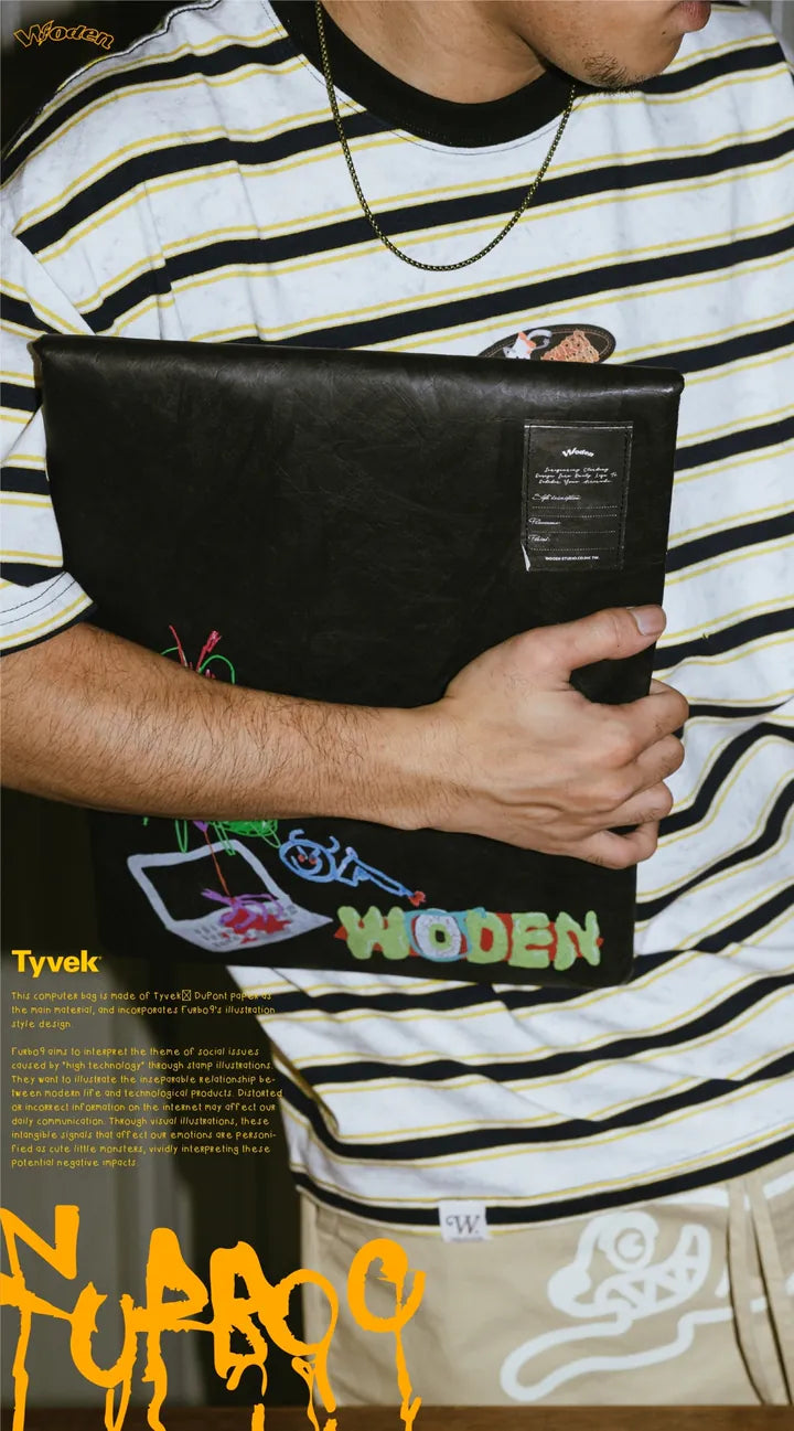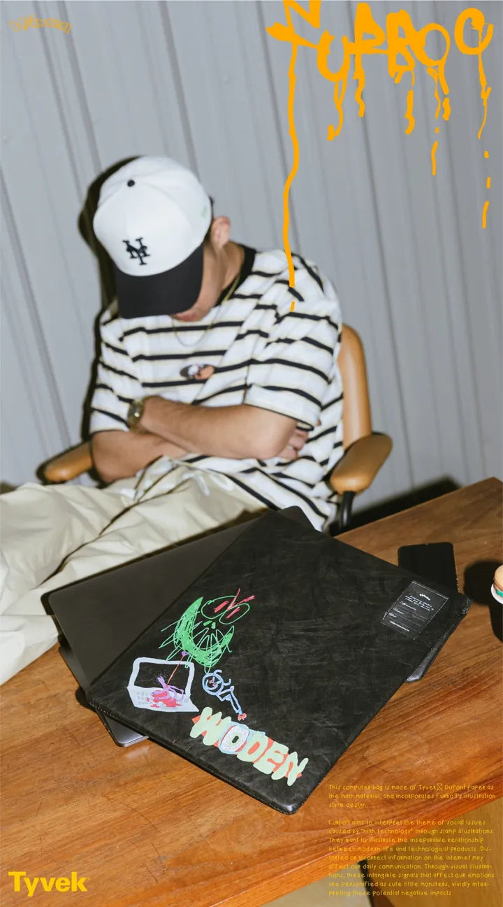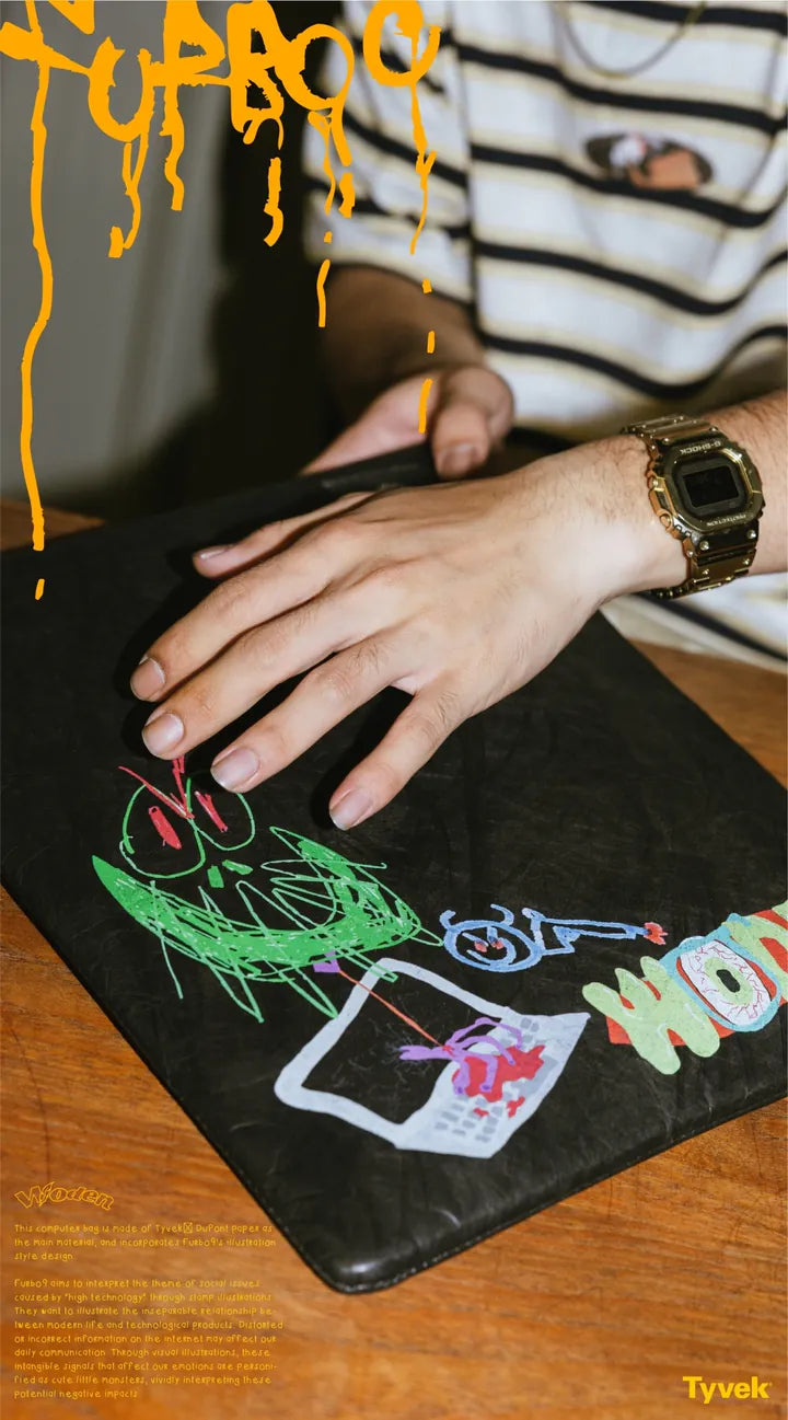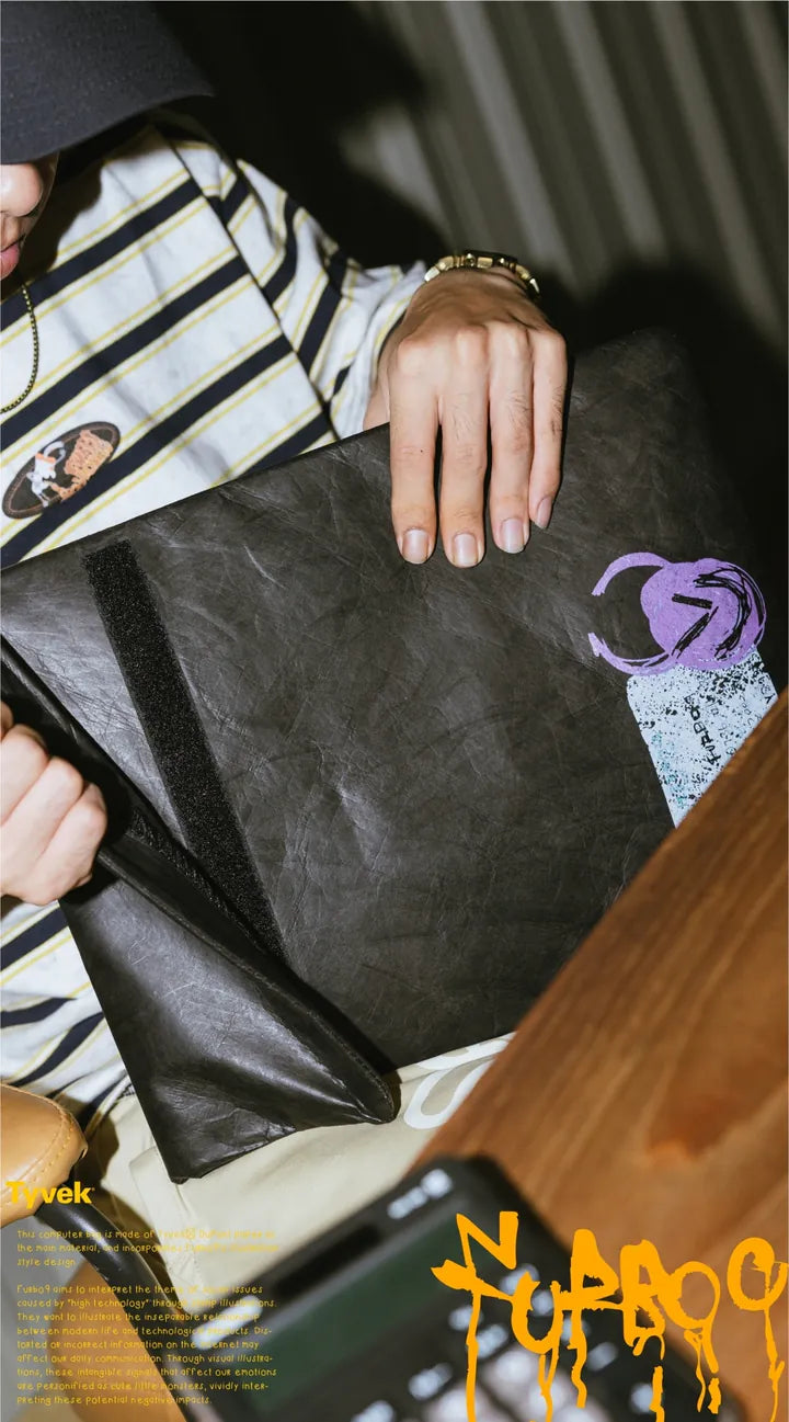 此款電腦包選用了Tyvek®杜邦紙作為主要材質,並融入了Furbo9的插畫風格設計。