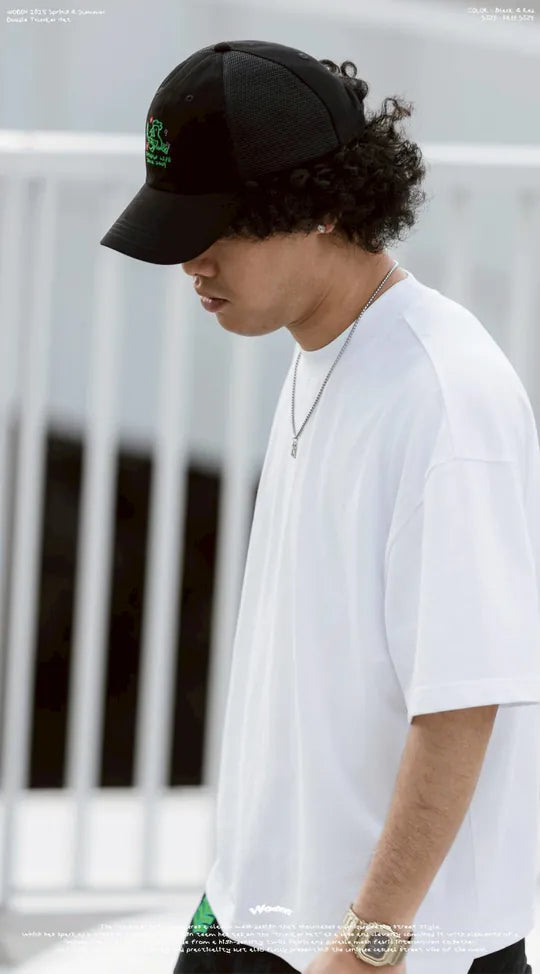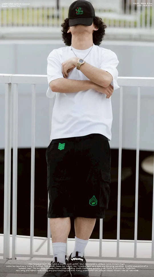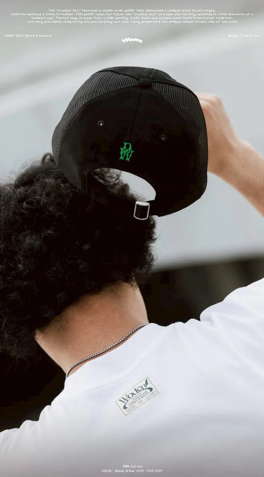 「卡車帽」經典的網布設計,展現出獨特的復古街頭風格,曾在時尚穿搭掀起一陣風潮。本次設計團隊以『卡車帽』為基礎,巧妙結合『棒球帽』元素,帽身採用高密度斜紋布與耐磨網布交錯拼接,不僅兼具百搭實穿性,更完整呈現網布特有的隨性街頭感。