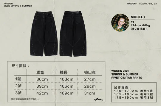 WODEN 2025 Spring & Summer Rivet Cimitar Pants