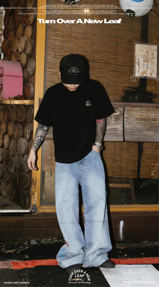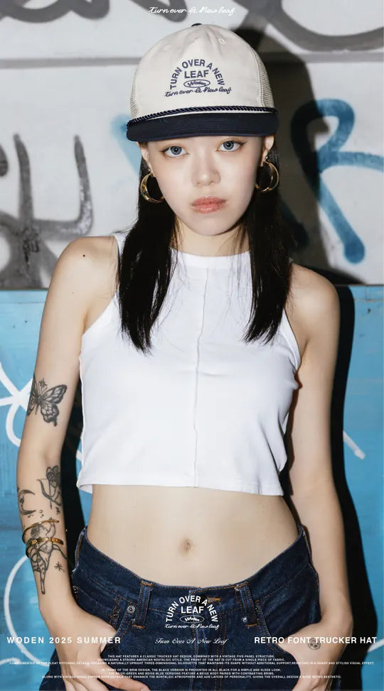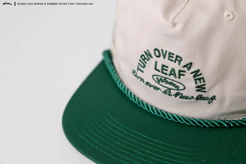 正面刺繡字樣「TURN OVER A NEW LEAF」,寓意翻開新篇章、迎接嶄新生活,傳達低調卻充滿態度的品牌精神。背面縫製復古米色紡棉標籤,細節之中體現對帽款質感與識別度的講究。