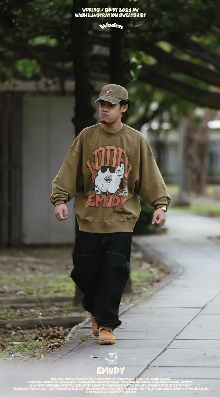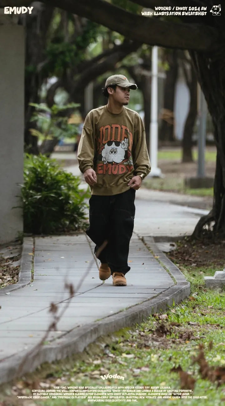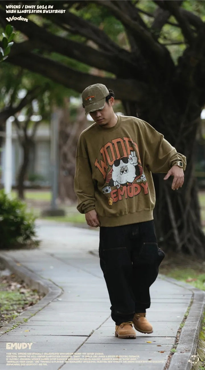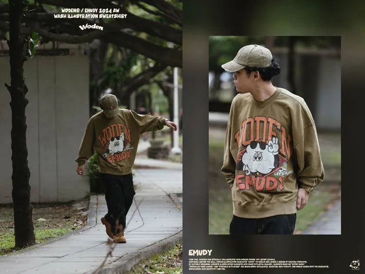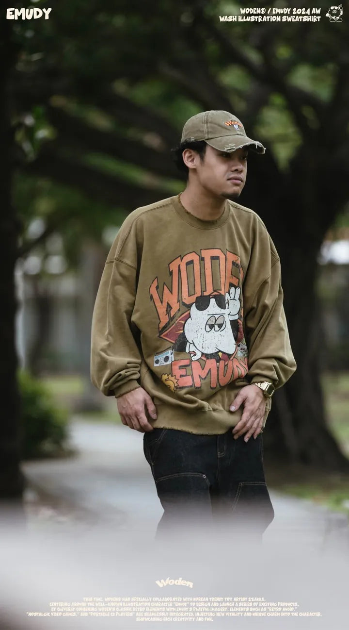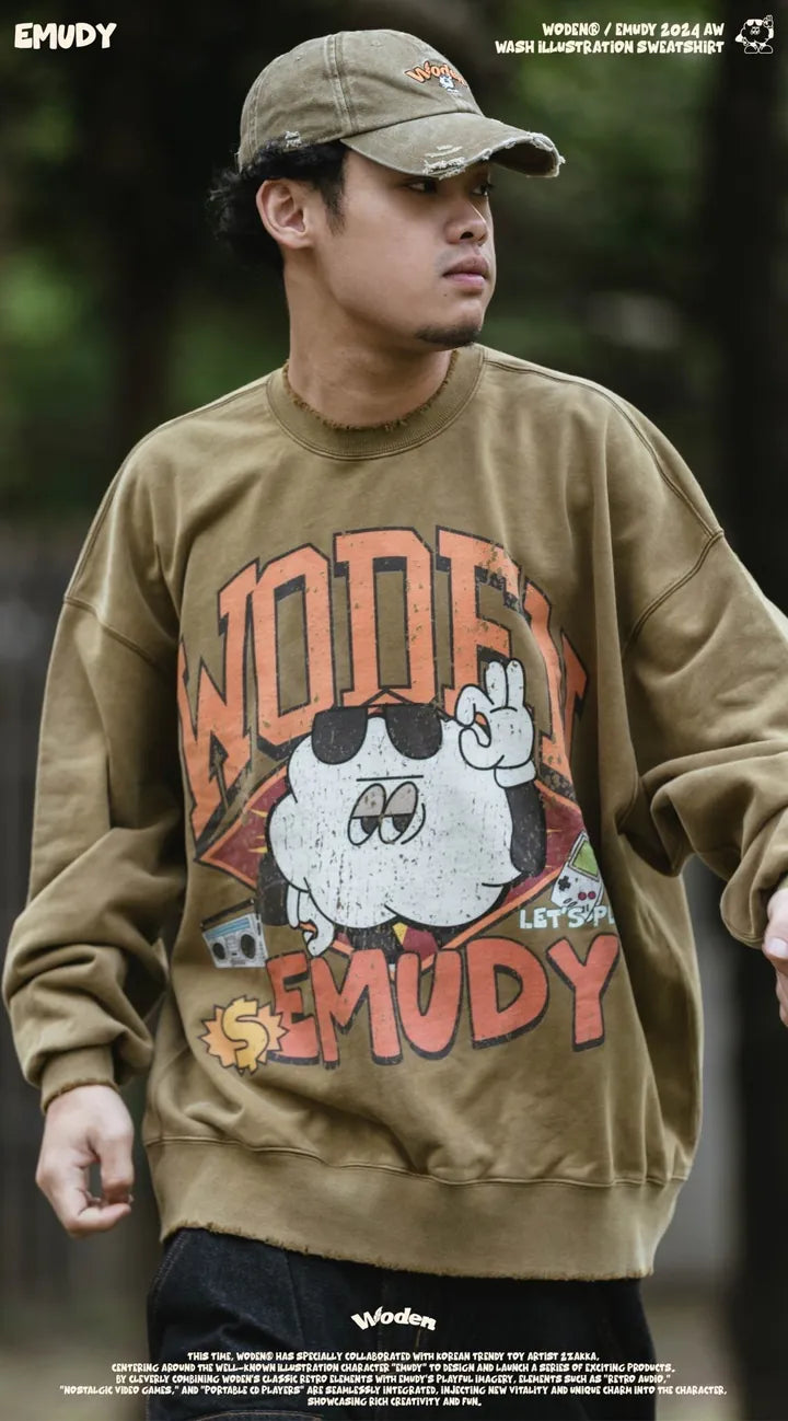 WODEN / Emudy 2024 Autumn & Winter Wash illustration Sweatshirt