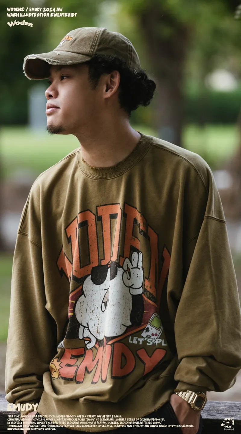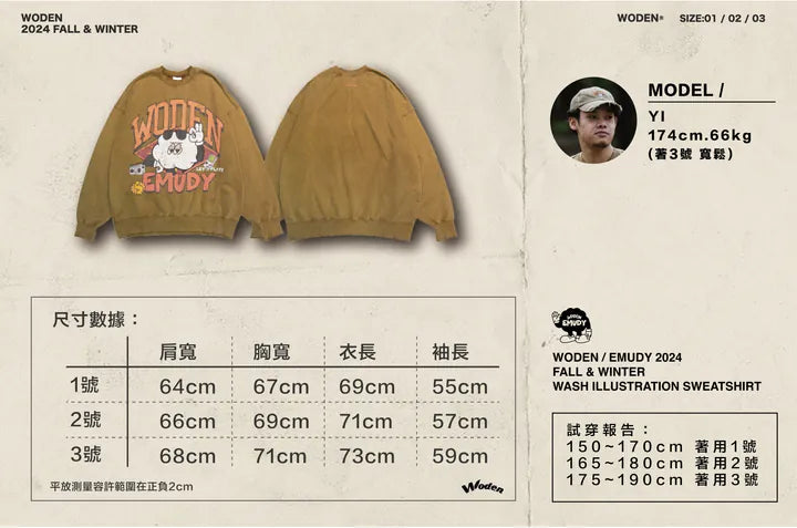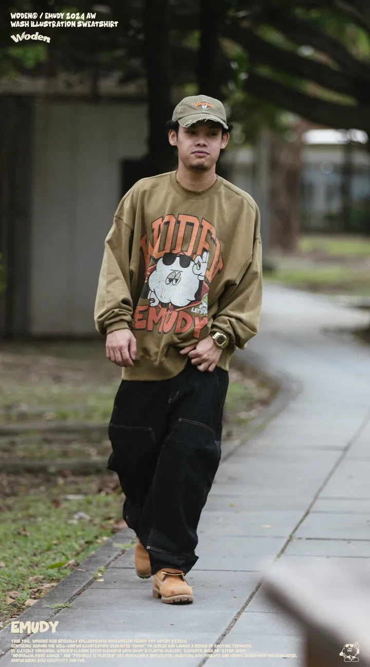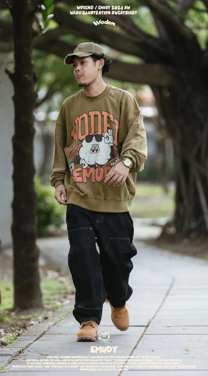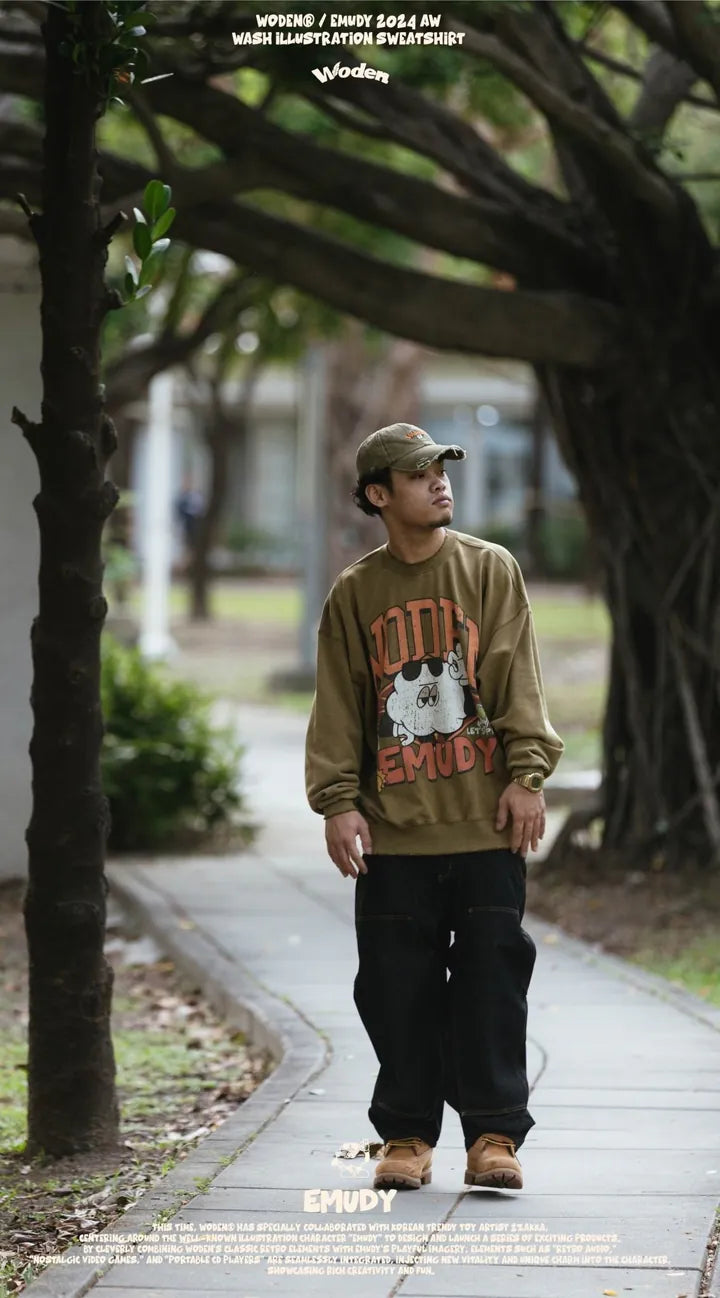 WODEN / Emudy 2024 Autumn & Winter Wash illustration Sweatshirt