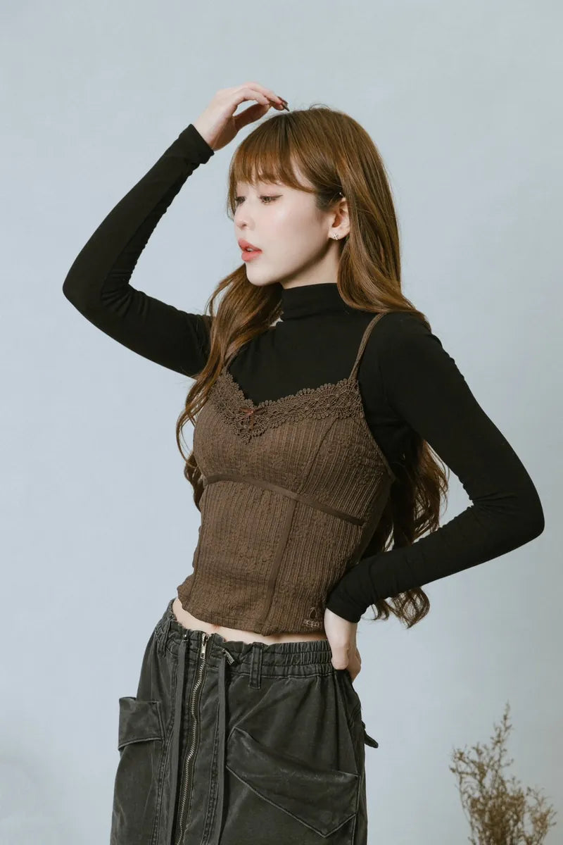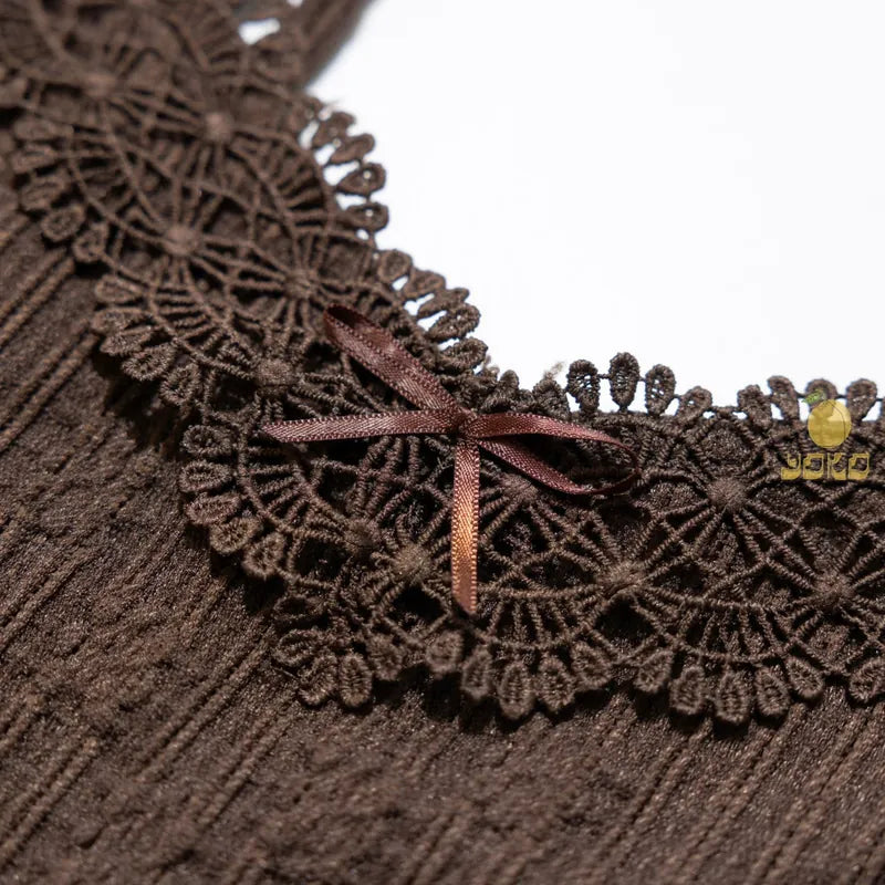 以高彈性蕾絲面料製成,親膚舒適,貼合身形不緊繃