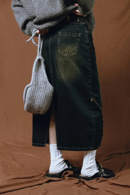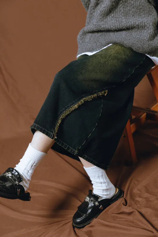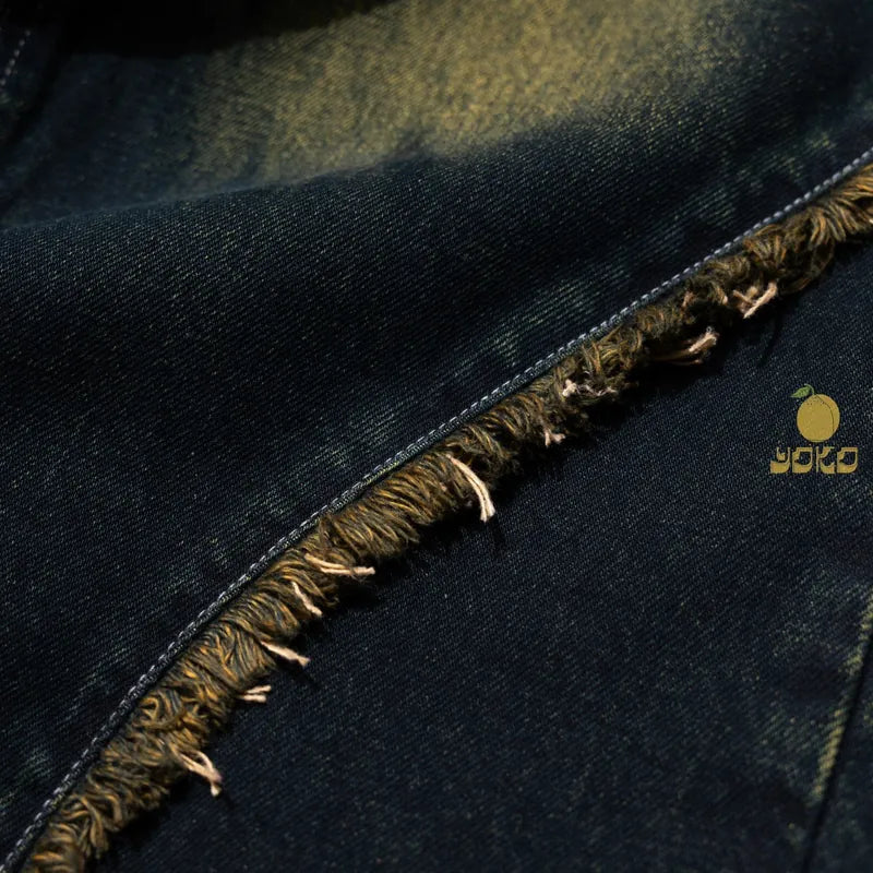 刷色細節增添復古感,下擺抽鬚設計帶來隨性街頭的氛圍。